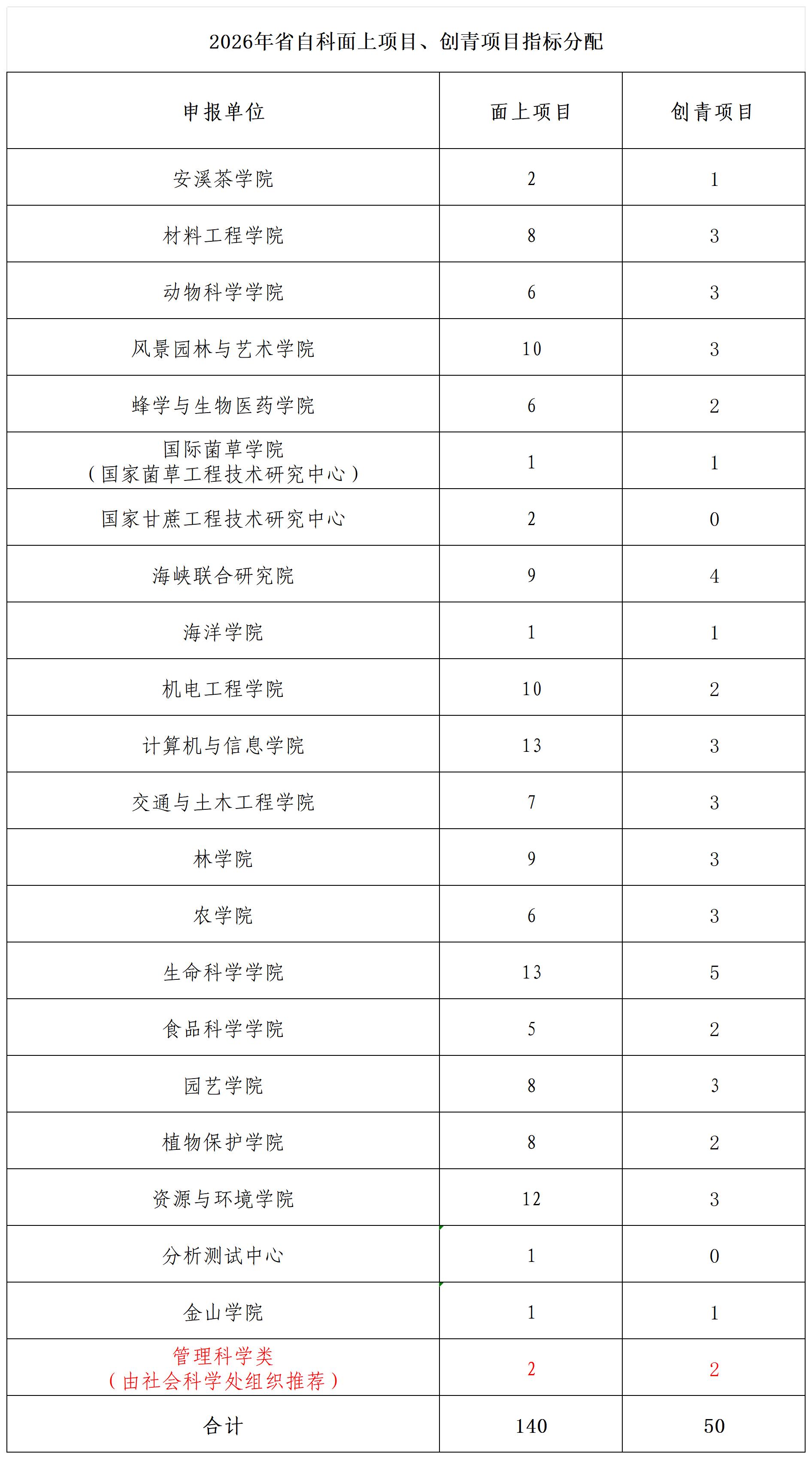 五、省自然科學(xué)基金面上項(xiàng)目(高校聯(lián)合)、創(chuàng)青項(xiàng)目推薦指標(biāo)分配至各二級(jí)單位。指標(biāo)分配情況如下表,各二級(jí)單位可酌情備選1項(xiàng)。