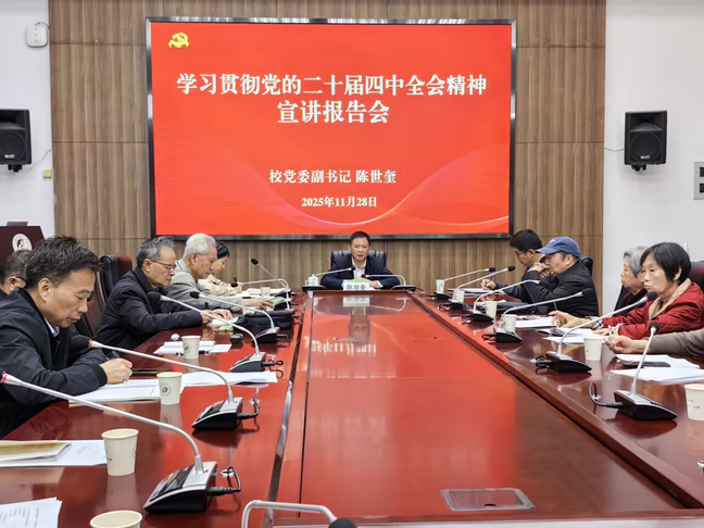 陳世奎指出,制定中長期規劃指導經濟社會發展,是我們黨治國理政的一種重要方式,也是中國特色社會主義政治優勢的集中彰顯。黨的二十屆四中全會精神和“十五五”規劃內涵豐富、博大精深、思想深邃、舉措務實,是指導未來一個階段發展的重要綱領。他強調,學習宣傳貫徹黨的二十屆四中全會精神,是當前和今后一個時期的重大政治任務。要深刻領會其精神實質與核心要義,并以此為指導,將全會精神與我校發展實際緊密結合,切實抓好貫徹落實。他希望離退休老同志繼續發揮優勢,積極建言獻策,為學校事業高質量發展貢獻力量。