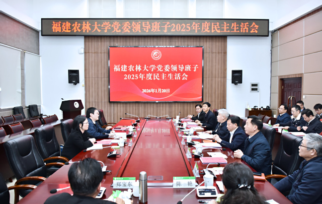 1月20日上午,福建農林大學在福州倉山校區明德樓武夷廳召開校黨委領導班子2025年度民主生活會。2025年度黨員領導干部民主生活會省委第5督導組到會指導。校黨委領導班子成員參加會議,民主黨派校領導列席會議。會議由校黨委書記賴海榕主持。