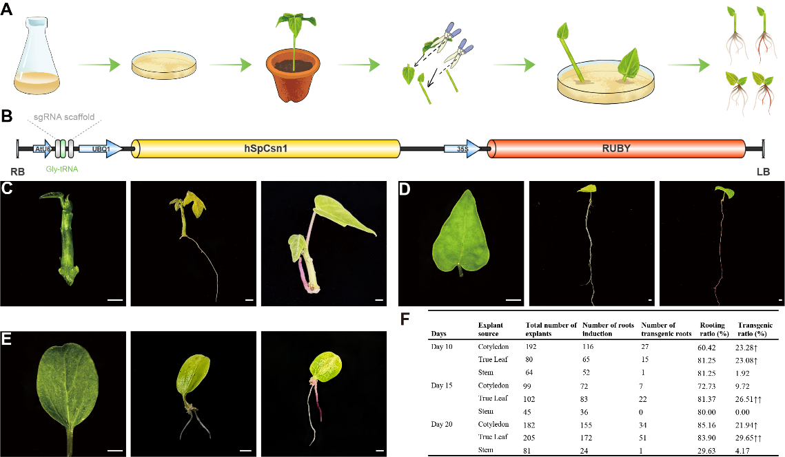 圖1 番木瓜CDB毛狀根遞送系統:快速篩選陽性植株并驗證編輯活性
