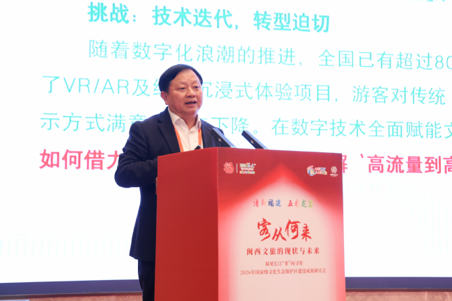 2月28日,由福建省文旅廳和龍巖市政府主辦,龍巖市文旅局、長汀縣人民政府承辦的2026年國家級文化生態(tài)保護區(qū)建設成果研討會在長汀召開。研討會以“客從何來--閩西文旅的現(xiàn)狀與未來”為主題,邀請福建農(nóng)林大學校長、福建省長汀紅色文化產(chǎn)業(yè)鏈科技特派團團長蘭思仁,廣東省作家協(xié)會主席、中山大學中文系教授、特派團首席專家謝有順,福建省廣播影視集團副董事長洪雷,福建省旅游協(xié)會會長李毅強,福建師范大學美術(shù)學院教授藍泰華作主旨演講,為閩西文化生態(tài)保護區(qū)建設和文旅產(chǎn)業(yè)發(fā)展提供寶貴思路。龍巖市政府副市長簡洪坤致辭,文旅部非遺司相關(guān)領(lǐng)導應邀參加。