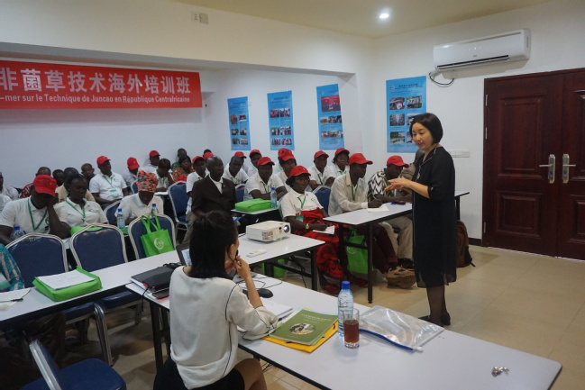 團隊負責人給中非菌草技術海外培訓班學員授課