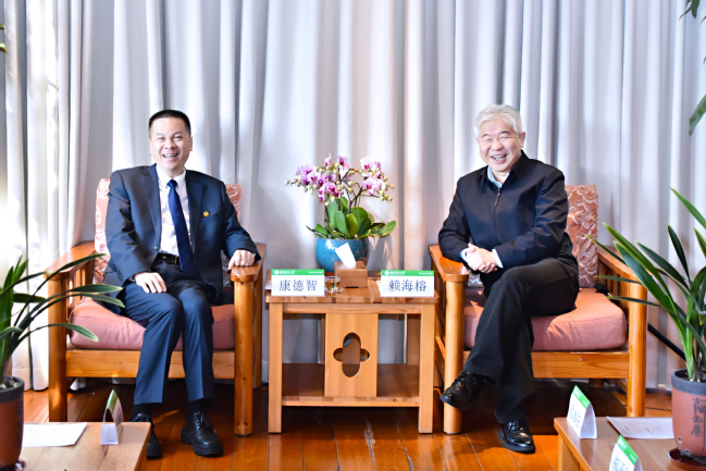 3月11日,福建醫科大學附屬第一醫院院長康德智、副院長賴繁彩一行來校交流,校黨委書記賴海榕在明德樓十三層會客室會見客人,雙方圍繞深化農醫交叉合作、共促大健康產業發展等進行座談交流,達成合作共識。校黨委副書記陳世奎陪同調研,副校長唐振鵬參加座談。