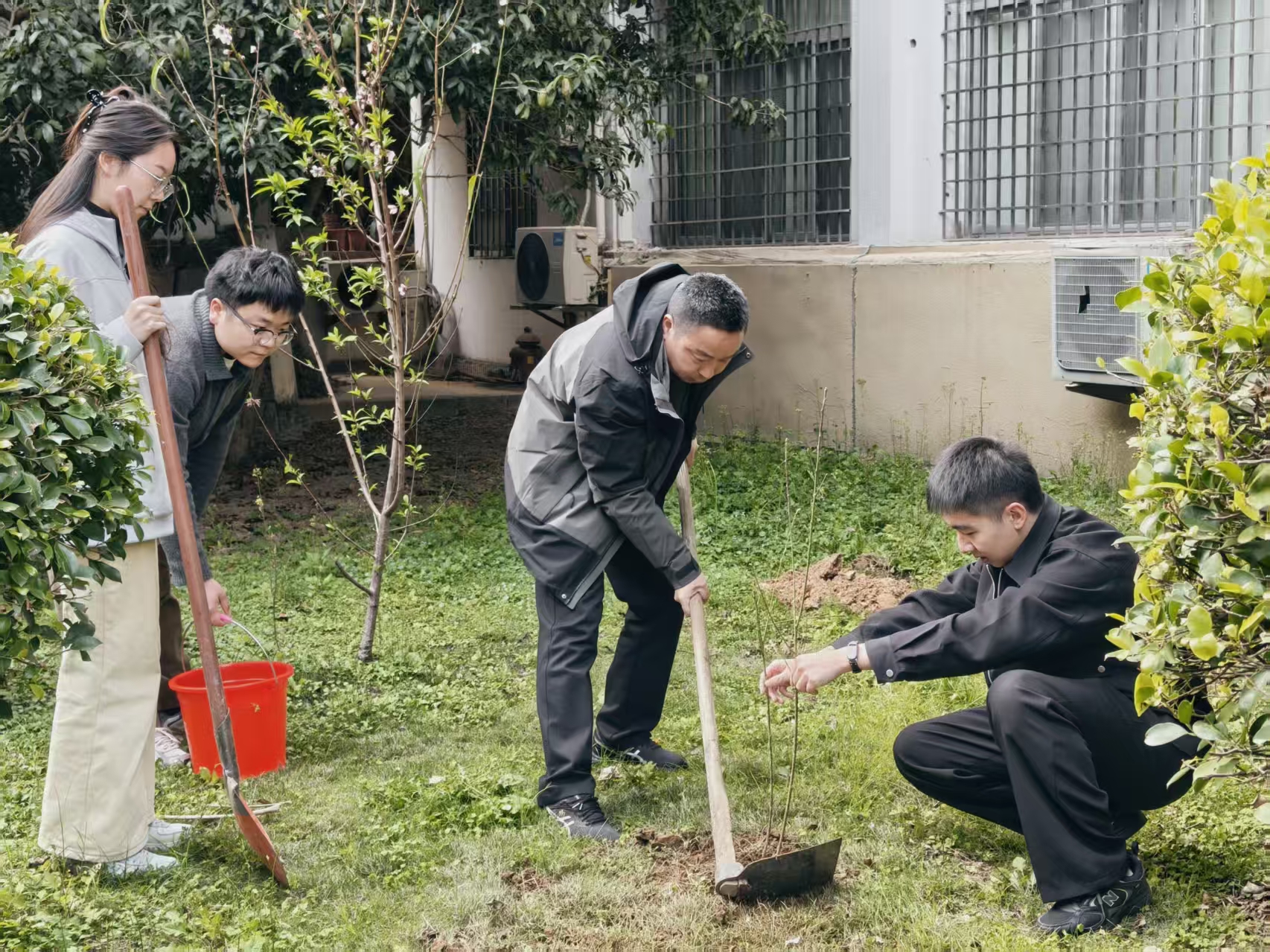 3月12日下午,經濟與管理學院在經管樓桃李園開展植樹節勞動教育活動。學院黨委書記張開晃、副書記李健英,全體輔導員及學生黨員代表共同參與,以實際行動踐行綠色發展理念,深化勞動教育內涵。