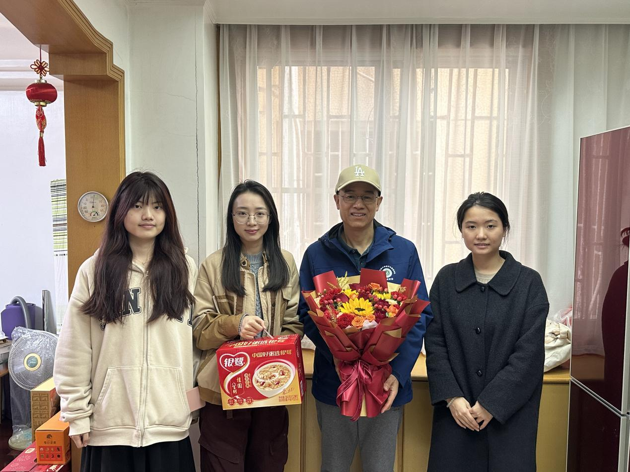 在劉述龍老師家中,同學們為劉老師送上拗九粥和鮮花,致以節日問候。劉老師回憶教學往事,細數學院發展歷程,勉勵同學們健強體魄,勤勉求學。在學院校友之家,黃怡老師與師生親切交談,結合自身工作與生活經歷,從專業知識、社會實踐談到青春成長、人生理想,言語間滿是對青年學子的期許。同學們收獲滿滿,備受鼓舞。