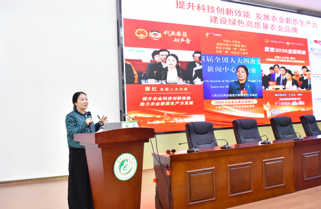 賴海榕在主持中表示,廖紅教授的報告既有政治高度,又有理論深度,更有實踐溫度,對于我們?nèi)胬斫夂蜏?zhǔn)確把握2026年全國兩會精神,具有重要的啟發(fā)和指導(dǎo)意義。他就學(xué)校深入學(xué)習(xí)宣傳貫徹2026年全國兩會精神提出具體要求。一要提高政治站位,在學(xué)深悟透上走在前。把學(xué)習(xí)兩會精神與學(xué)習(xí)習(xí)近平總書記關(guān)于教育、科技、人才工作的重要論述、習(xí)近平總書記來閩考察重要講話精神以及習(xí)近平總書記給我校全體師生的重要回信精神結(jié)合起來,與學(xué)習(xí)黨的二十屆四中全會精神結(jié)合起來,深刻領(lǐng)悟“兩個確立”的決定性意義,堅決做到“兩個維護”。二要發(fā)揮示范作用,在凝聚共識上作表率。各級黨組織和黨員領(lǐng)導(dǎo)干部要帶頭學(xué)習(xí)宣講、先學(xué)一步、深學(xué)一層,通過深入細致的宣傳引導(dǎo),激勵廣大師生把智慧和力量凝聚到落實兩會確定的各項目標(biāo)任務(wù)上來。三要聚焦主責(zé)主業(yè),在推動發(fā)展上見真章。堅持學(xué)用結(jié)合、知行合一,將兩會精神融入各項工作,高標(biāo)準(zhǔn)謀劃和推進學(xué)校“十五五”改革發(fā)展。聚焦國家重大戰(zhàn)略和地方發(fā)展需求,在拔尖創(chuàng)新人才培養(yǎng)上出實招,在關(guān)鍵核心技術(shù)攻關(guān)上求突破,在服務(wù)鄉(xiāng)村全面振興上作貢獻,努力在推進農(nóng)業(yè)強國建設(shè)中展現(xiàn)新作為、干出新業(yè)績,為實現(xiàn)“十五五”良好開局貢獻福建農(nóng)林大學(xué)的智慧和力量。