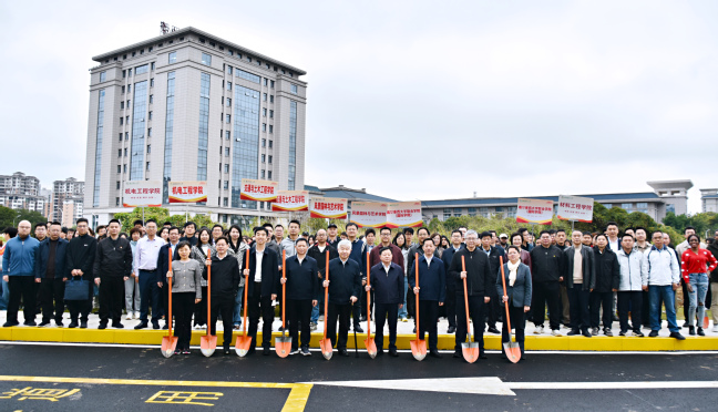 植樹伊始,校領導與師生、校友代表們一同拿起鐵鍬,三五成組、分工協作,扶苗正根、揮鍬填土、踩實圍堰、提水澆灌,每一道工序都一絲不茍、配合默契,現場氣氛熱烈而有序。經過一個小時的辛勤勞作,百余株新植樹苗在春風中昂然挺立,錯落有致,盡顯蓬勃生機與盎然春意。此次種植的苗木為我校南平延平校區自主培育的鄉土優良樹種,包括福建山櫻花、碧桃、烏桕等共計120株,這些樹木的種植將進一步豐富大學城校區的植物景觀層次,提升校園綠化品質。未來,這里將春有山櫻爛漫、夏有碧桃綴枝、秋有烏桕流丹,四季流轉間為大學城校區繪就一幅多彩的生態畫卷。