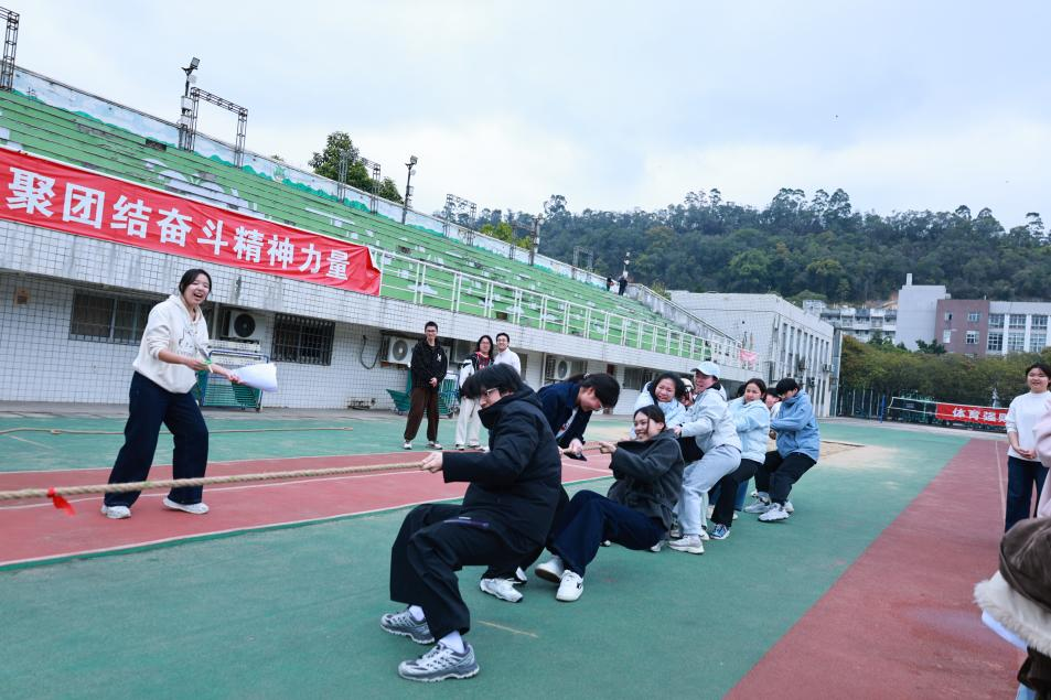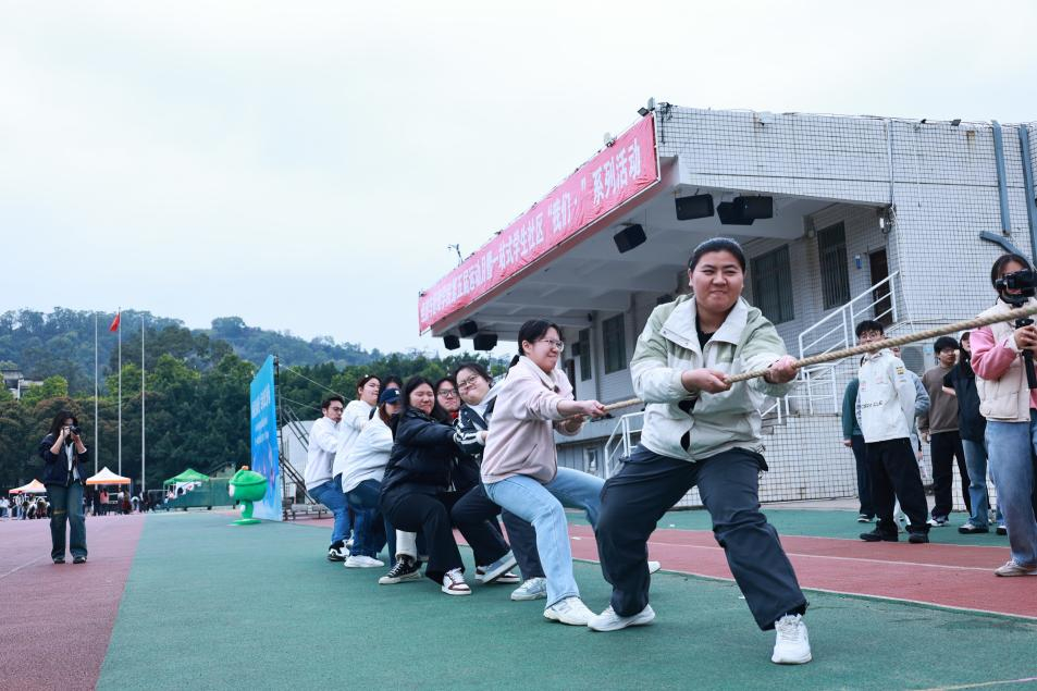 拔河比賽與“我們·‘趣’運動”集章游園同步開場。賽場一端,各參賽隊伍緊握長繩、鉚足干勁,吶喊助威聲此起彼伏,每一次拉鋸都扣人心弦。賽場另一端,一圈到底、搭橋過河、珠行萬里等趣味運動吸引眾多學子參與,低門檻、高互動的形式讓學子們在歡聲笑語中釋放壓力,賽場處處洋溢著青春活力。