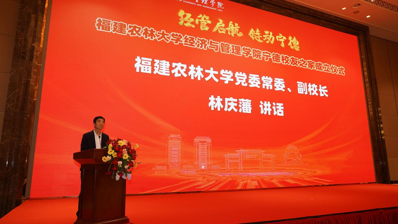 林慶藩代表學校向大會的勝利召開表示熱烈祝賀,向長期以來情系母校、關心支持學校建設發展的廣大校友致以誠摯感謝。他指出,近年來學校在辦學質量、科學研究、學科建設等方面取得了一系列新進展,這些成績的取得離不開廣大校友的鼎力支持。當前,學校正深入學習貫徹習近平總書記給學校全體師生的重要回信精神,全力奮進國家“雙一流”,希望校友們一如既往關心支持母校發展,為母校獻計獻策,以優異成績迎接母校90周年校慶。他對新成立的經管學院寧德校友會提出三點期許:一是打造有溫度的“校友之家”,凝聚同心合力;二是搭建有高度的“合作之橋”,助力學校發展;三是構筑有力度的“奮進共同體”,助推學校“雙一流”建設。