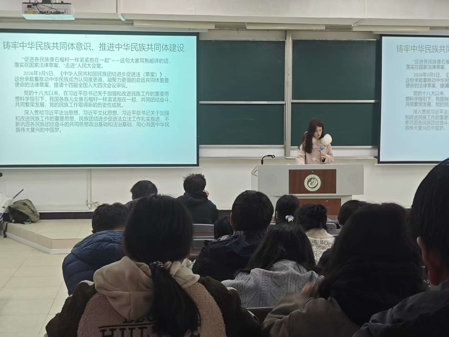 活動(dòng)期間,各班級積極響應(yīng),紛紛組織開展“鑄牢中華民族共同體意識(shí)”主題團(tuán)課。團(tuán)課上,同學(xué)們通過觀看專題視頻、學(xué)習(xí)民族政策法規(guī)等形式,深刻領(lǐng)會(huì)中華民族共同體意識(shí)的豐富內(nèi)涵和時(shí)代價(jià)值。來自藏族、土家族等不同民族的同學(xué)們主動(dòng)走上講臺(tái),結(jié)合自身成長經(jīng)歷,生動(dòng)講述本民族的風(fēng)土人情、傳統(tǒng)節(jié)日、服飾特色和飲食文化,分享家鄉(xiāng)民族團(tuán)結(jié)的感人故事。臺(tái)上臺(tái)下互動(dòng)熱烈,掌聲不斷,在真情交流中增進(jìn)了各民族同學(xué)之間的了解與認(rèn)同。