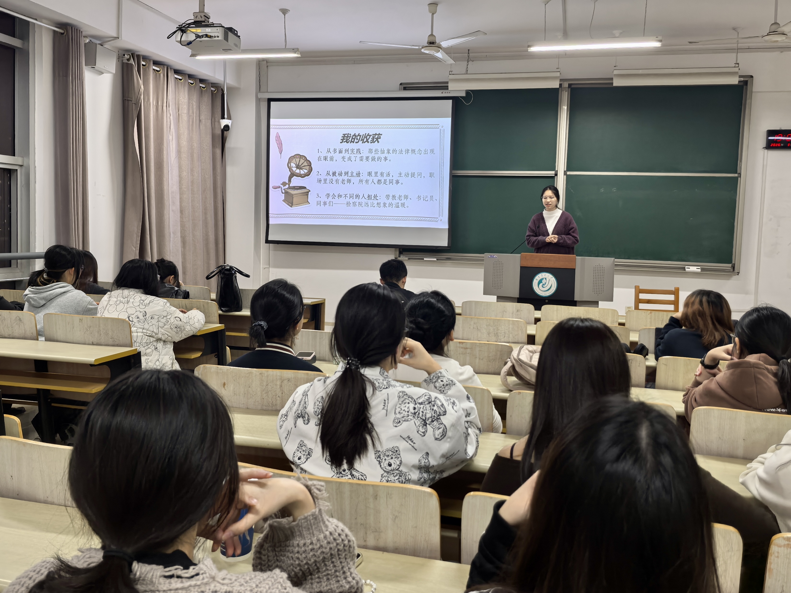 會上,徐靜蕓、陳凡心兩位同學分享了寒假在福州市人民檢察院和長汀縣人民檢察院的全過程。兩位學姐以親身經歷,帶領同學們沉浸式感受司法程序的嚴謹規范,展現檢察機關嚴肅認真、溫暖務實的工作氛圍,為低年級同學樹立了實踐標桿。經驗分享結束后,張云清圍繞涉外法律英語特色班培養方案、課程體系、實踐實習、政策支持等內容作了詳細解讀,幫助同學們清晰把握專業定位與發展路徑。在交流互動環節,師生圍繞入學半年以來的課程教學、校園生活、第二專業自考、職業發展前景等話題深入溝通,現場氛圍熱烈融洽。