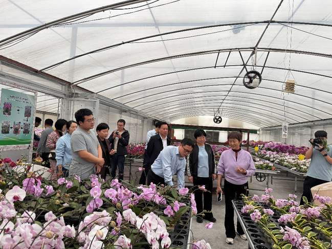 隨后,技術(shù)專家組前往漳州市漳浦縣國(guó)家現(xiàn)代農(nóng)業(yè)產(chǎn)業(yè)園,調(diào)研漳州鉅寶生物科技股份有限公司與海峽生物科技股份有限公司。在臺(tái)資國(guó)家級(jí)高新技術(shù)企業(yè)漳州鉅寶生物科技股份有限公司,專家組深入了解蝴蝶蘭種質(zhì)資源庫(kù)、新品種培育區(qū)及病害防控技術(shù)應(yīng)用情況;在上市國(guó)企海峽生物科技股份有限公司,考察了其保存超2000個(gè)品種的蝴蝶蘭種質(zhì)資源庫(kù)及種苗培育、保鮮儲(chǔ)運(yùn)技術(shù)。考察期間,專家與企業(yè)負(fù)責(zé)人座談交流,圍繞技術(shù)瓶頸突破、成果轉(zhuǎn)化應(yīng)用等形成了一系列建設(shè)性意見(jiàn)。