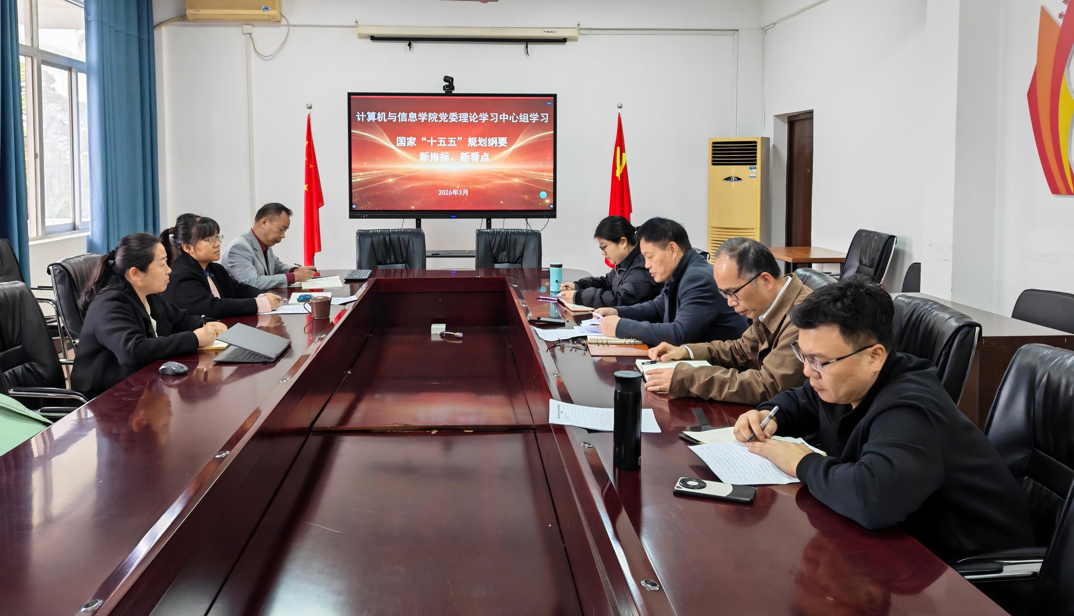 3月26日上午,計算機與信息學院黨委召開理論學習中心組學習會,專題學習貫徹習近平總書記在全國兩會期間重要講話精神,深入解讀政府工作報告、“十五五”規劃綱要等兩會核心內容,緊密結合學院學科特色與發展實際,研究部署貫徹落實舉措。學院黨委理論學習中心組成員參加會議,會議由學院黨委書記曾起郁主持。