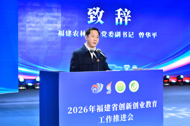 3月27日,由福建省教育廳主辦、福建農(nóng)林大學(xué)承辦的2026年全省創(chuàng)新創(chuàng)業(yè)教育工作推進會在福建農(nóng)林大學(xué)福州倉山校區(qū)大禮堂召開。會議總結(jié)了“十四五”期間我省創(chuàng)新創(chuàng)業(yè)教育工作成效,研究部署未來五年創(chuàng)新創(chuàng)業(yè)教育工作重點任務(wù)。省委教育工委委員,省教育廳黨組成員、副廳長吳琛出席會議并講話,福建農(nóng)林大學(xué)黨委副書記曾華平出席會議并代表承辦單位致辭。