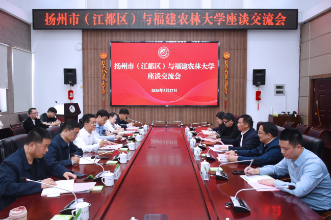 座談會上,陳世奎對佴軍一行到來表示歡迎,簡要介紹了學校辦學歷史與近年來的發展成效,表示福建農林大學認真貫徹落實習近平總書記給全體師生的重要回信精神,深耕“三農”,以第一作者或通訊作者單位發表CNS三大頂刊論文22篇,牽頭組建農林生物安全全國重點實驗室,在菌草、甘蔗、銀耳、再生稻、茶葉、蘭花、竹子等經濟產業領域形成十余項全國領先的“單項冠軍”成果,并建立了覆蓋全省的科技小院與科技特派員服務體系,學校已成為農林基礎研究的大校、強校,踐行科技特派員制度的大校、強校。學校立足培養高素質農林人才,積極引導和鼓勵優秀學子走出福建、服務全國,為全面推進鄉村振興和建設農業強國貢獻力量。他表示,揚州城市底蘊深厚、經濟實力雄厚,產業布局與我校現代農業、智慧農業、生物農藥,功能食品開發、寵物健康、特色果蔬育種等特色優勢學科高度契合,雙方合作基礎扎實、合作潛力巨大,即將舉辦的“揚州人才校園日”活動選擇我校作為農林專業院校的首站,體現了對學校的充分信任與支持,學校高度重視和珍惜此次合作機遇,將全力做好服務保障工作,并以此次交流為契機,在人才校園招聘、產學研用深度融合、科技成果轉化落地等方面深化與揚州的合作,努力打造校地合作樣板,實現互利共贏。